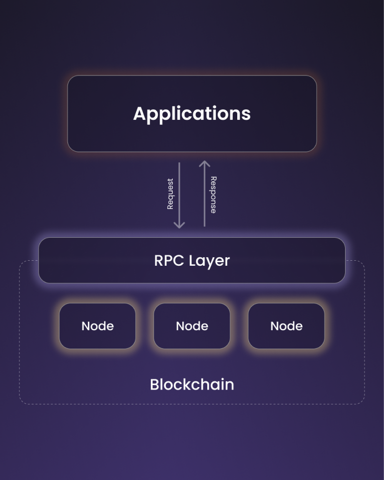 Once the client sends the request, it is routed through the network to the designated Servicers, who then process the request by interacting directly with the blockchain on the client’s behalf. After the blockchain responds to the request, the Servicers relay the blockchain’s response back to the client, completing the request-response cycle. This system allows clients to seamlessly access blockchain data or submit transactions, all while interacting in a trustless and decentralized manner.